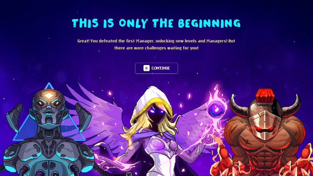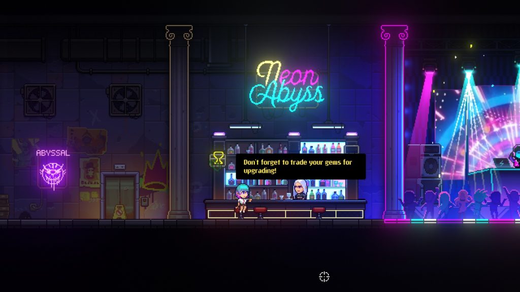 A Neon Abyss, ahogy a neve is jelzi, egy neonokkal teli klubban játszódik. Binding of Isaac-féle aréna harcokon keresztül haladunk ebben a szörnyekkel teli neon dungeonben, amiket roguelite elemek bővítenek a runjaink során. Minden run végén van egy úgynevezett manager, akik a játék során folyamatosan a célpontjaink lesznek. Sajnos a játék egyik legnagyobb hibája is ebből a rendszerből származik, de ezt később kifejtem. Minden dungeon random generált, de egy plusz pont jár érte, hogy a legenerált seed kódját halálunkkor (vagy a beállításokba bepipálva bármikor) megnézhetjük. Így ha nem vagyunk elégedettek magunkkal vagy csak versenyeznénk egyet a barátainkkal, akkor könnyen megoszthatjuk azokat másokkal.