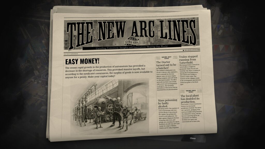 A New Arc Line világa steam- és dieselpunk elemekkel gazdagított világa, az Arcanumhoz hasonlóan a mágia és technológia közötti konfliktus köré épül. Az atmoszféra rendkívül nosztalgikus és egyedi, a fő történet pedig komoly erkölcsi dilemmákat tartalmaz, például választási csalások vagy a mágusok rendszerszintű elnyomásának kérdése. A helyszínek változatosak, és mindegyik részletesen kidolgozott. Ugyanakkor a párbeszédek gyakran sekélyesek, válaszlehetőségeink limitáltak és a mellékküldetések időnként véletlenszerűnek érződnek.