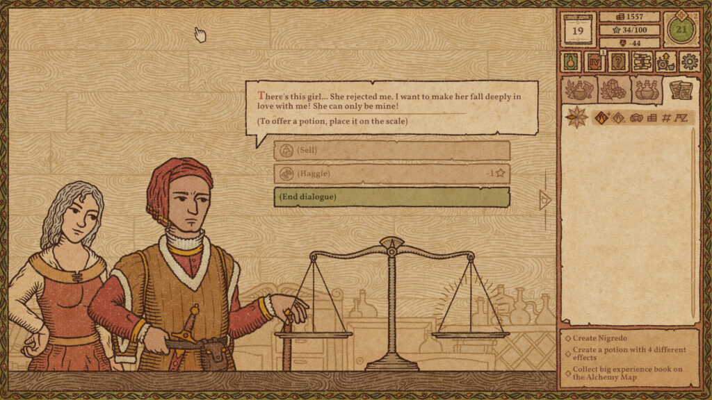 Megítélésünk pedig ahhoz mérten változik, hogy kiknek segítünk, és kiket zavarunk el a boltunkból. Egy férfi le akarja égetni a szomszédja házát mert az megbántotta? Ha kisegítjük egy tűz bájitallal romlik a népszerűségünk, ha elküldjük javul, ez esetben viszont szembe kell néznünk a népszerűségünk romlásával. Egy fiatalember leesett egy fáról és bokáját törte? Ha egy életerő bájitalt adunk neki, akkor mind népszerűségünk mind megítélésünk javulni fog, ha elküldjük, akkor mindkét mutatónk negatív irányba fog elmozdulni, nekünk pedig el kell döntenünk melyik irányba akarunk elmozdulni, ugyanis rossz megítélés esetén üzletünk a gonosz emberek felé lesz vonzó, jó megítélésünk esetén pedig ezek az egyének el fognak kerülni minket. Amennyiben semlegesen tudjuk tartani az értéket, mind jó, mind rossz vásárlókkal fogunk találkozni, mely pedig a népszerűségünk gyors növekedéséhez vezet majd.