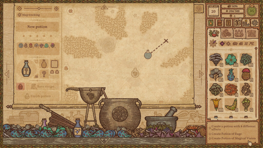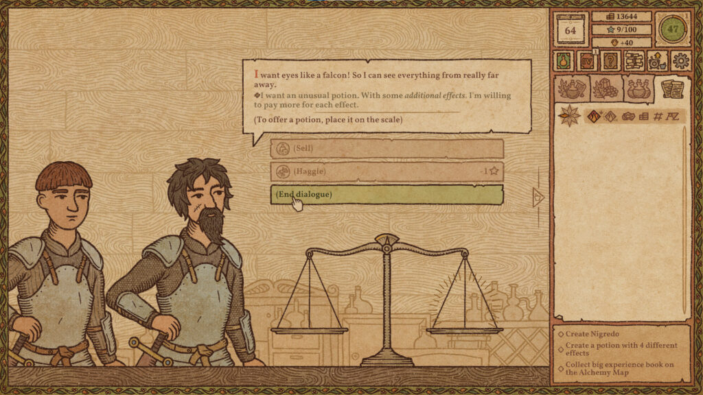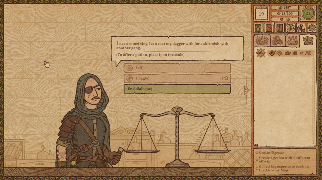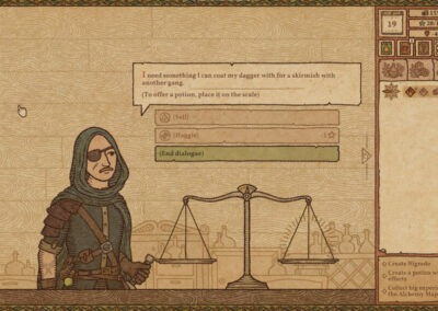A tinyBuild újabb indie gyöngyszeme, mely nemrégiben elérte az 1.0 verziószámot. A játék alapvető ígérete, hogy egy alkimistát alakítva a rendelkezésünkre álló alapanyagok és eszközeink segítségével különböző italokat főzve kell kísérleteznünk, illetve vásárlóink igényeit kielégítenünk. Mindezen feladatokat nehezíti kasszánk telítettsége, alapanyagkészletünk mérete, és a „térképen” található akadályok. Ezen felül mind megítélésünket, mind népszerűségünket finoman egyensúlyban kell tartanunk.