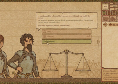 Összefoglaló A játék fülbemászó zenéjével, művészi képi világával és az általa biztosított szabadsággal rendkívül elvarázsoló tud lenni. A falusiak olykor igencsak repetitív kérései rontanak ugyan egy kicsit az összképen, a Potion Craft egy rendkívül egyedi és különleges játék, mely a kecsegtető áráért egy remek élmény lehet az indie játékok élvezőinek.