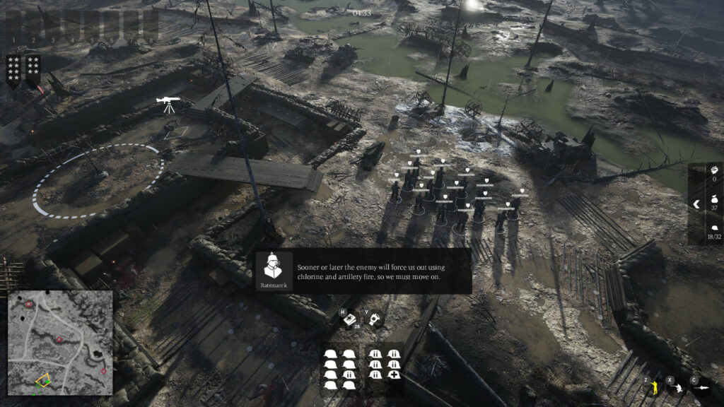 A fegyvereken kívül robbanóanyagok és gáz gránátok is rendelkezésünkre állnak. A gáz használatával például ki tudunk üríteni egy lövészárkot vagy gépfegyveres bunkert. A bunkert akár a pályákon elhelyezett ágyúkkal be is omlaszthatjuk. Sajnos mi magunk nem tudjuk átvenni a telepített gépágyúk irányítását ezekben a bunkerekben. A taktikus pozicionálás kulcsfontosságú lesz a játék során, de ehhez a készítőknek még sokat kell fejleszteni a jelenleg hibásan működő AI gondolkodásán.