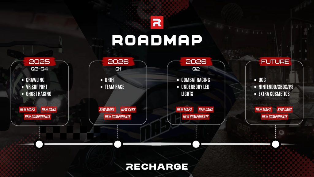 Jelenleg nagyon korai szakaszban van a játék fejlesztése, de már most látszik, hogy szolid alapokat tettek le. 2026 Q2 van megcélozva arra, hogy minden tervezett játékmódot bele tegyenek (crawling, drift, team race, combat racing) és VR supportot is kapjon (amelyhez nagyon jó kameraállás már most rendelkezésre áll!) ezen felül új pályák, autók és komponensek is érkeznek majd. Reméljük, hogy valóra is tudják váltani az elképzeléseiket, mert nagyon ígéretes már a mostani állapotában is a játék.