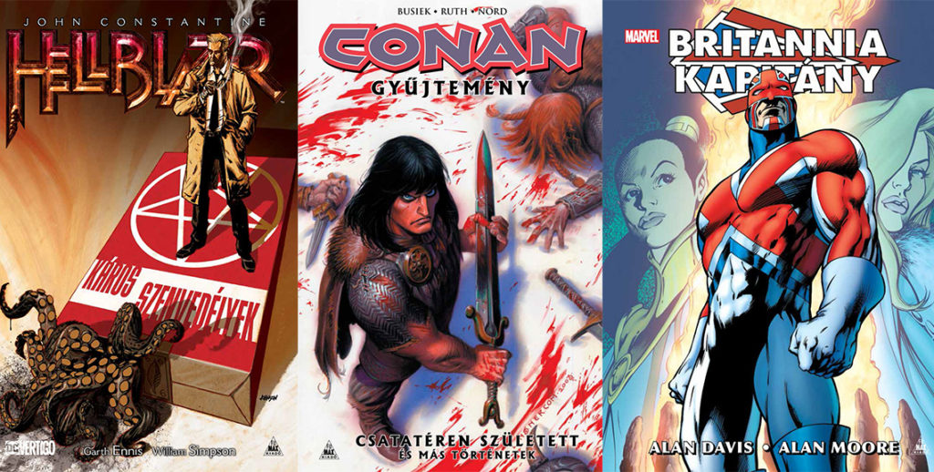 A DC karaktereknél Constantine szép népszerűségnek örvend és ezt a Fumax is felismerte így most jelenik meg majd a Hellblazer: Káros Szenvedély aminek az alapján készült a Keanu Reeves főszereplésű film is. Conan is ráadásul az első színes kötettel, ami a Csatatéren született és más történetek alcímet fogja magán viselni. Az újdonságok itt nem értek végre mert egy újabb Alan Moore képregényt is beszerezhetünk a hétvégén, a Britannia Kapitányt!