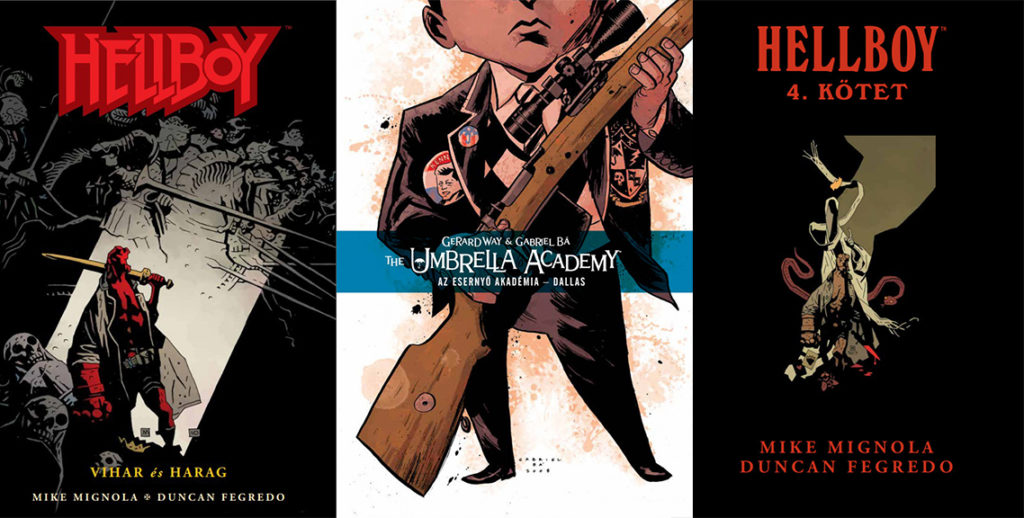 Hellboy története tovább folytatódik, érkezik a 8. kötet A pokolban alcímmel. Ha ez nem lenne elég akkor a Hellboy Omnibus 4. kötete is beszerezhető lesz a hétvégén. Ezen felül az Esernyő Akadémia kissé furcsa családja sem nyugszik, mert a 2. kötet is elérhető lesz, Dallas címen ráadásul nem csak puhafedeles kiadásban hanem az első kötethez hasonlatosan limitált kiadásban is kapható lesz.