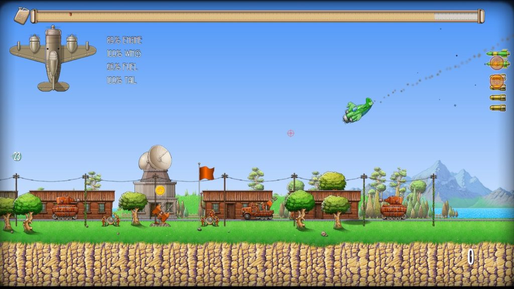 Igazából ez egy érdekes próbálkozás. Az irányítást szokni kell az elején, de aztán ahogy játszunk és kisérletezgetünk, rengeteg apróságra jöhetünk rá, például arra is, hogy kellő ügyességgel egy ellenséges gépbe is átugorhatunk vagy lőszert spórolandó, talajközelben maradva a propellert is használhatjuk ellenségeink irtására. A grafikai körítés inkább kellemes, mint szemet gyönyörködtető, a régi 16 bites korszakra emlékeztet leginkább. A zenék és a hanghatások is ezt erősítik, tisztára a 90-es évek hangulatát árasztja.