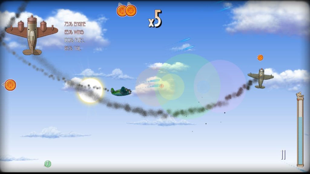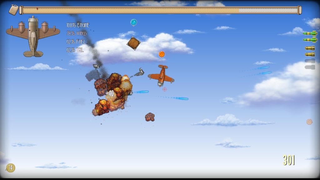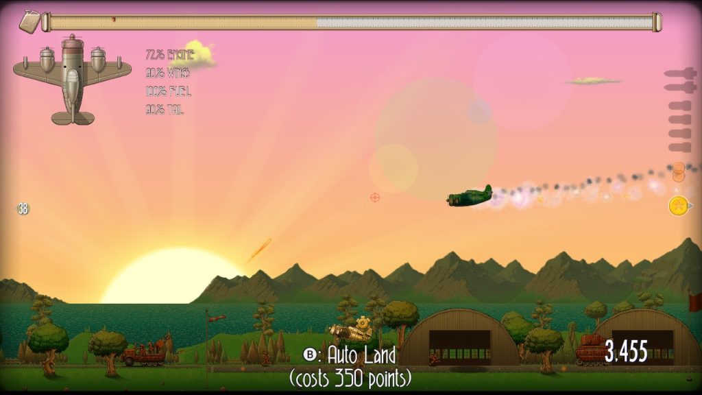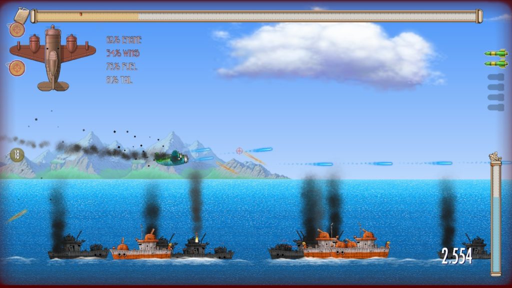 Egy rövidke tréning és pilótánk kiválasztása után, egyből a mély vízben találjuk magunkat és gyakorlatilag innentől nincs is más dolgunk, mint a procedurálisan (vagyis előre meghatározott szabályok alapján, ám mégis véletlenszerűen) generált pályákon az egymást követő random küldetéseket teljesíteni és bezsebelni az értük járó tapasztalati pontokat, melyek a gépünket erősítik. Így a játék elején lévő gyenge kis gépünkből, kellő játékkal impozáns kis vasat fejleszthetünk. A klasszikus „side-scrolling” játékmenetet annyiban variálták meg, hogy itt nem csak egy irányba repülhetünk, hanem oda-vissza. Küldetéseket leadni/felvenni is csak az anyahajón tudunk, vagy az elfoglalt bázisokon. Itt egyből meg is szerelik gépünket, feltankolják, sőt, fegyvereink is újratöltődnek. Ezekre pályák közben maximum az ellenséges gépek levadászásával van lehetőségünk, ilyenkor esetenként ejtőernyős csomagok hullanak, melyeken átrepülve aktiváljuk őket, ez lehet páncél, vagy akár lőszer is.