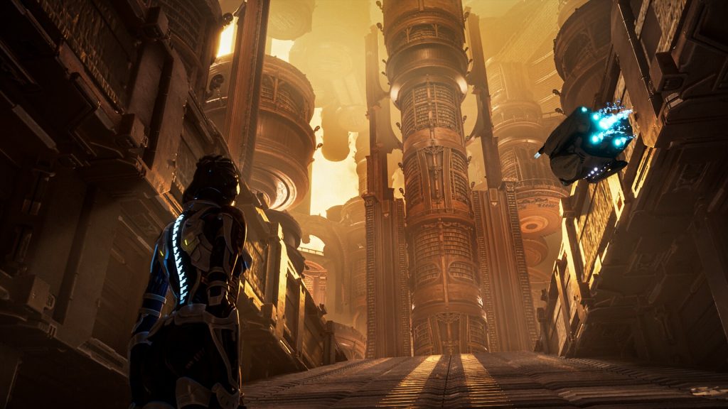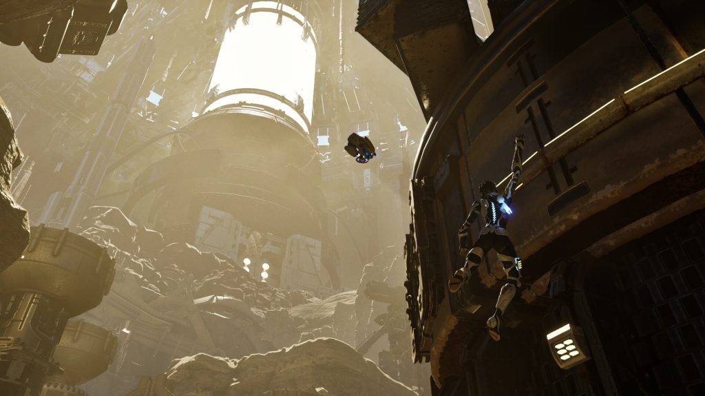 Mint említettem, a játék látványvilága a legerősebb pontja: az ipari környezet sötét és részletgazdag, a világítással pedig rendkívül ügyesen játszottak a fejlesztők egyszerre keltenek ismerős, de mégis sci-fi hatást. Zoe mozgása reszponzív, irányítása precíz, és még egy aranyos robot kísérő, Koby is csatlakozik hozzánk. Ő hamar szerethető és nélkülözhetetlen társunkká válik, mind funkciói, mind karaktere miatt is.