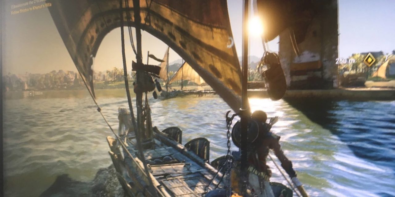 Ha kicsit közelebbről megnézzük a fenti képet láthatjuk, hogy a játékos, nyilakkal és pajzzsal a hátán éppen egy hajón utazik. A küldetés szó szerint úgy szól, hogy „Öld meg a krokodilt!”, arról azonban sejtésünk sincs, hogy ez egy emberi delikvenst, vagy egy szerencsétlen nílusi hüllőt takar-e.