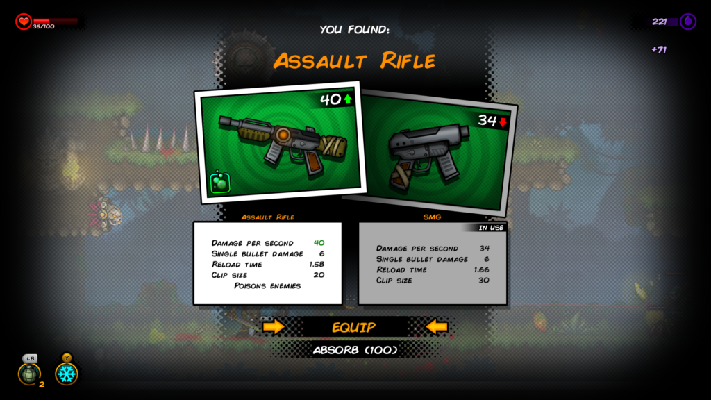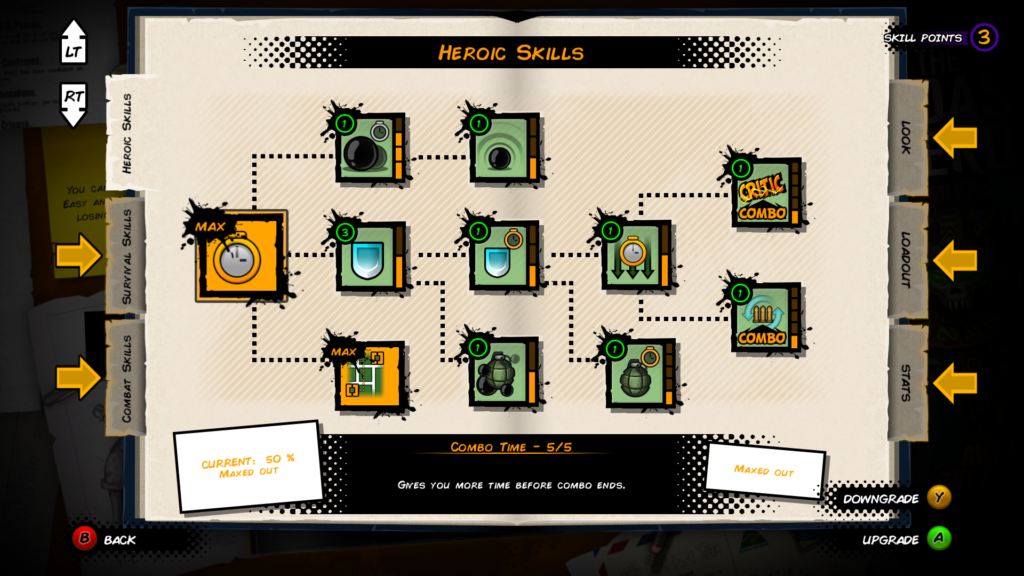 És ez nem csak egy hasonlat, ugyanis a játék tényleg egy képregényben játszódik, ahol a lapszámok a szintek és a karakterek rajzoltak, több teremre oszlik egy oldal és minél gyorsabban, minél nagyobb „combo” elérése a cél. Minden legyőzött ellenfélért kapunk tintát, illetve tapasztalati pontot, mellyel a menet végén fejleszthetjük karakterünket.