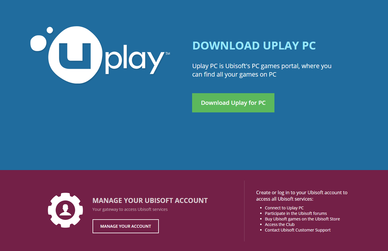 Miközben töltjük le a játékot, érdemes egy mellékfolyamatot teljesíteni, mert szükségünk lesz rá a későbbiekben. Elsőként telepítenünk kellene egy Uplay nevű alkalmazást a gépünkre (link: https://uplay.ubi.com/), és regisztrálnunk kellene a Ubisoftnál, azaz a Uplayen.