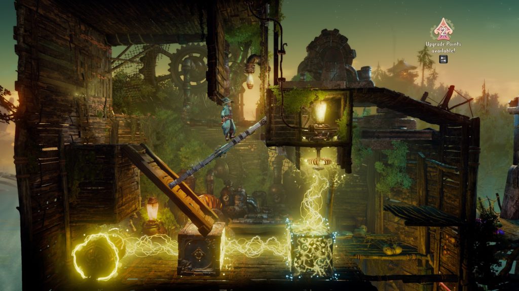 Szerencsére a játék gerincét még mindig a platformokon történő ugrálás és a puzzle megoldások adják. Erre egészen új mechanikákat kapunk, és a karakterek képességei is sokkal együttműködőbbek, mint valaha. Ez leginkább multiplayer esetén kihasználható, de ha elég ügyes az ember, akkor single playerben is kiaknázhatja ezeket a lehetőségeket. Például Amadeus, a varázsló idézhet egy kockát, amit megtart a levegőben. Zoya ezt követően egyik és másik oldalát is kikötheti a falhoz, vagy más tárgyhoz és egy rögtönzött hidat hozhat létre, amin mindenki átfuthat. Ez természetesen az egyik legalapvetőbb kombináció a játékban, de nem szeretnék senkit lespoilozni az ismertetésükkel. Nem csak hősökkel de a környezettel is jobban együtt tudunk dolgozni ebben a részben. Lesznek például mágnesezhető felületek, elektromosságot átadó felületek vagy épp napfényt visszaverő tükrök.