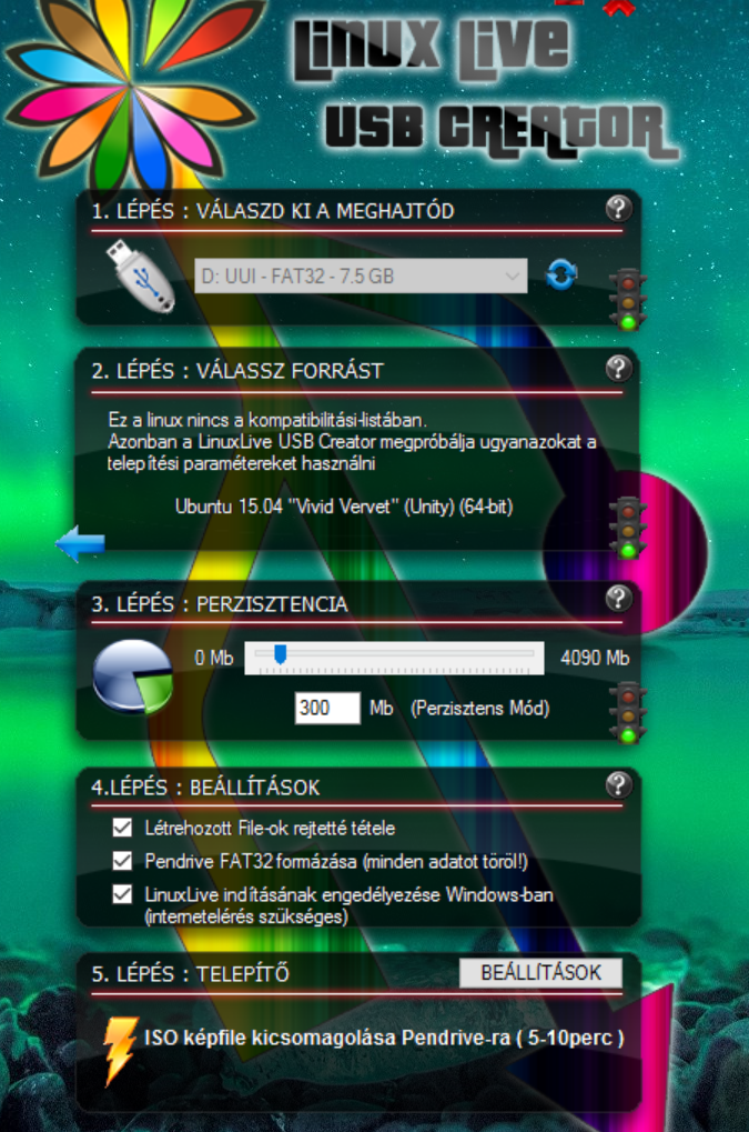 - Indítsuk el a pendrive elkészítésének folyamatát.