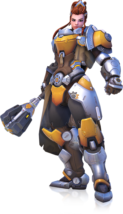 Brigitte, miután megunta Reinhardt páncéljának javítását, saját maga is beállt a harcba. A kezében lévő pajzs segítségével limitált sebzést fel tud fogni, és ezalatt kábítani is tud egy ellenfelet, ha előre dashel vele. A sebzett csapattársaknak javítócsomagot tud dobni és rallyjával armort adhat nekik, miközben saját maga gyorsabban mozog. Ütése egyszerre több ellenséget is sebezhet, és passzívan gyógyítja vele a környező csapattársait.