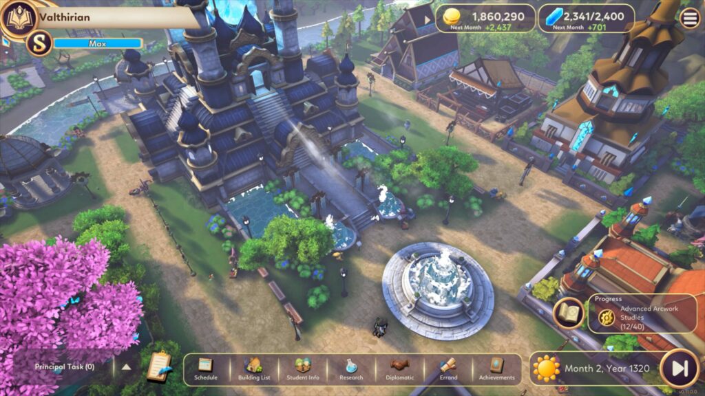 A játék legkiforrottabb része az iskola irányítása, melyben az igazgató szerepét betöltve bővítjük az iskolát és irányítjuk az oktatási folyamatokat. Az iskola bővítése új kollégiumok és osztálytermek vásárlásával történik. A játék számos feladatot szab ki számunkra, azonban ezen feladatok csak az átnézeti képernyőn látható, így képesek vagyunk aktívan a feladatok ellen dolgozni, úgy, hogy a játék erről nem figyelmeztet, és csak 3-4 menüt visszalépve látjuk a feladatlistát. Nagyon kevés a rugalmasság, mind a diákok számára elérhető szakok, mind a pénzünk mennyisége már a kezdetektől fogva nagyon szűkös és sok minden a hosszútávú előrehaladás mögé zárva.