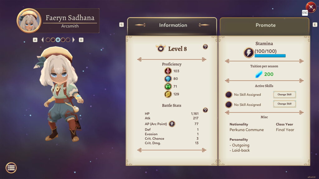 A Valthirian Arc: Hero School Story 2 elindításakor egyenesen egy harci bemutatóba kerülünk. Ez azt a látszatot kelti, mintha a harc sokkal nagyobb hangsúlyt kapna a játékban, mint valójában fog. A játék tudtunkra adja, hogy mi vagyunk annak az iskolának igazgatója, ami felé épp tartunk, egyetlen tanítványunk, Rodno kíséretében, miközben végig vezetjük őt a tutorial harcokon. A játék ezután szinte azonnal behúzza a kéziféket, mivel az egyszerű harci tutorial után átvált az iskolavezetés bemutatásába. A telefonos játékokban megszokott felugró ablakos szövegdobozok és indokolatlanul nagy nyilak mutatják, hogy hova kattintsunk, a harmadik ilyen lépés után már kezdtem várni, hogy mikor dobja fel a játék egy adott folyamat felgyorsításához használandó megvehető varázskristályokat. Szerencsére ez a pillanat soha nem következett be, a játékban ugyanis nincs semmiféle mikrotranzakció.