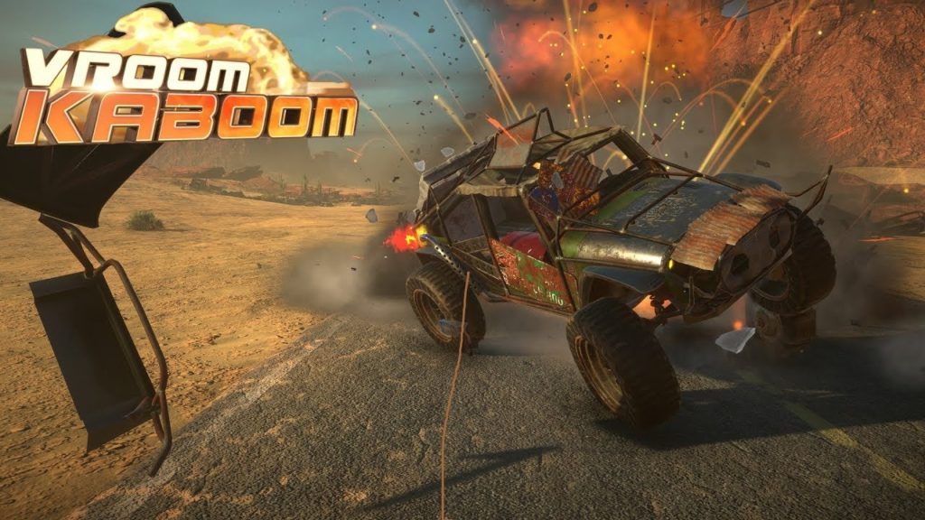 A Vroom Kaboom olyan mint egy visszafogottabb Carmageddon, ahol az autókkal egy univerzumban vagyunk, ami erősen Mad Max stílusú. Nem bonyolították túl, nincs története, nincs 20 gombos kombó sorozat, nem kell egyszerre 3-4 helyre figyelnünk, egyszerűen csak egy úton kell végig mennünk és kikapcsolódnunk míg rombolunk, mert ugye mi is lenne jobb, ahhoz, hogy lelazuljunk, mintha törhetünk, zúzhatunk?